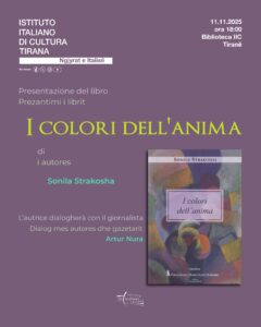 Martedì 11 novembre alle ore 18:00, presso la Biblioteca dell’Istituto Italiano di Cultura di Tirana, si terrà la presentazione del libro I colori dell’anima di Sonila Strakosha, un racconto emozionante che mostra come l’incontro con l’altro possa essere più semplice e autentico di quanto si immagini. La storia attraversa epoche e realtà diverse con leggerezza […]