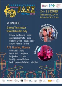 L’Istituto Italiano di Cultura è lieto di sostenere la XIII edizione dell’International Jazz Festival con la partecipazione di Simona Trentacoste Special 4et: Simona Trentacoste, voce e arrangiamenti – Angelo Di Leonforte, pianoforte – Riccardo Grosso, contrabbasso – Antonio Petralia, batteria & AJS Quartet con la partecipazione del sax baritono Francesco Caligiuri, in residenza a Tirana per il progetto A.I.R. Artisti […]