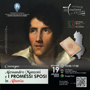 L’Istituto Italiano di Cultura è lieto di collaborare con il Centro Linguistico di Ateneo dell’Università Cattolica “Nostra Signora del Buon Consiglio” per l’organizzazione del Convegno “𝗔𝗹𝗲𝘀𝘀𝗮𝗻𝗱𝗿𝗼 𝗠𝗮𝗻𝘇𝗼𝗻𝗶 𝗲 𝗜 𝗣𝗥𝗢𝗠𝗘𝗦𝗦𝗜 𝗦𝗣𝗢𝗦𝗜 𝗶𝗻 𝗔𝗹𝗯𝗮𝗻𝗶𝗮” che si terrà il 𝟭𝟵 𝗼𝘁𝘁𝗼𝗯𝗿𝗲 𝟮𝟬𝟮𝟯 𝗼𝗿𝗲 𝟭𝟱.𝟬𝟬-𝟭𝟳.𝟬𝟬 nell’ambito della XXIII edizione della Settimana della Lingua Italiana nel Mondo Al convegno […]