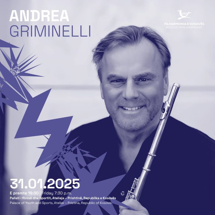L’istituto Italiano di Cultura in collaborazione con l’Ambasciata d’Italia in Pristina è lieto di sostenere la partecipazione del flautista Andrea Griminelli al concerto dell’Orchestra Filarmonica del Kosovo diretto dal Maestro Dario Salvi.