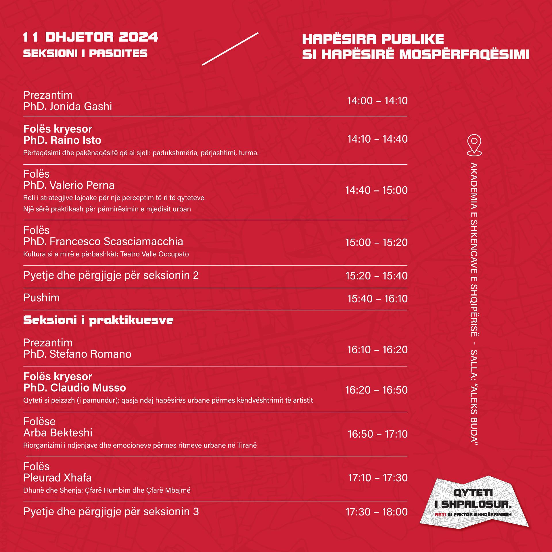 L’Istituto Italiano di Cultura è lieto di collaborare con l’Accademia delle Scienze d’Albania – Centro degli Studi d’Arte sostenendo la partecipazione di Fabio Naldi e Claudio Musso alla conferenza internazionale “Unfolding the city: Art as an agent of transformation”.