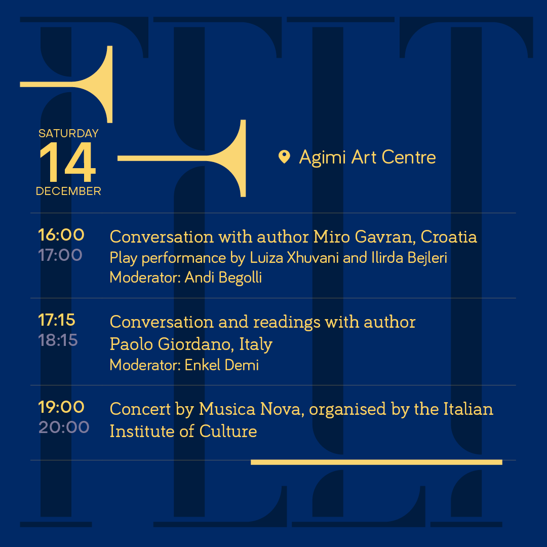 L’Istituto Italiano di Cultura è lieto di collaborare con la Delegazione dell’Unione Europea in Albania per la presentazione del Festival della Letteratura Europea a Tirana – FELT che si svolgerà dal 12 al 14 dicembre 2024.
