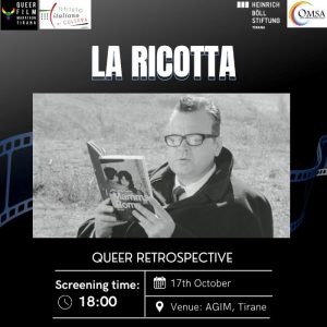 Instituti Italian i Kulturës ka kënaqësinë të bashkëpunojë me Queer Film Marathon Tirana, tashmë në edicionin e pestë, duke mbështetur programin e përzgjedhur Queer Retrospective kushtuar Pier Paolo Pasolini. Filmi i katërt: “La ricotta” nga Pier Paolo Pasolini Me: Orson Welles, Mario Cipriani, Laura Betti, Vittorio La Paglia Dramë Itali, 1963, kohëzgjatja 35 minuta. Straçi, […]