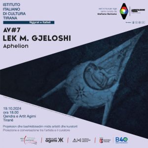 Instituti Italian i Kulturës prezanton takimin e shtatë të Annotazioni Video, me artistin shqiptar Lek Gjeloshi, i cili propozon videon “Aphelion”. Aktiviteti organizohet në bashkëpunim me Qendrën e Artit Agimi 19.10.2024 ora 18:00 Qendra e Artit Agimi – Tiranë Bulevardi Bajram Curri Hyrja e lirë Shfaqja e videos do të ndiqet nga një bashkëbisedim mes […]