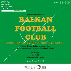 Instituti Italian i Kulturës ka kënaqësinë të bashkëpunojë me Bottega Errante Edizioni, për prezantimin e librit “BALKAN FOOTBALL CLUB – Udhëtim i guximshëm në kërkim të utopive dhe penalltive të gabuara” të autorit Gianni Galleri. Autori Gianni Galleri do ta prezantojë librin në një bashkëbisedim me gazetarin Andi Kasmi. Balkan Football Club lindi nga dhjetë […]